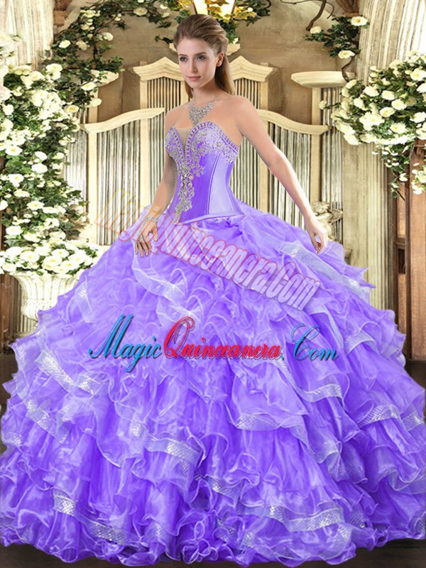 , Sleeveless Beading and Ruffled Layers Lace Up Sweet 16 Dress