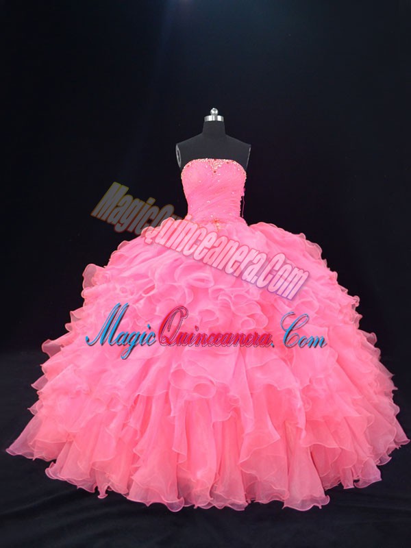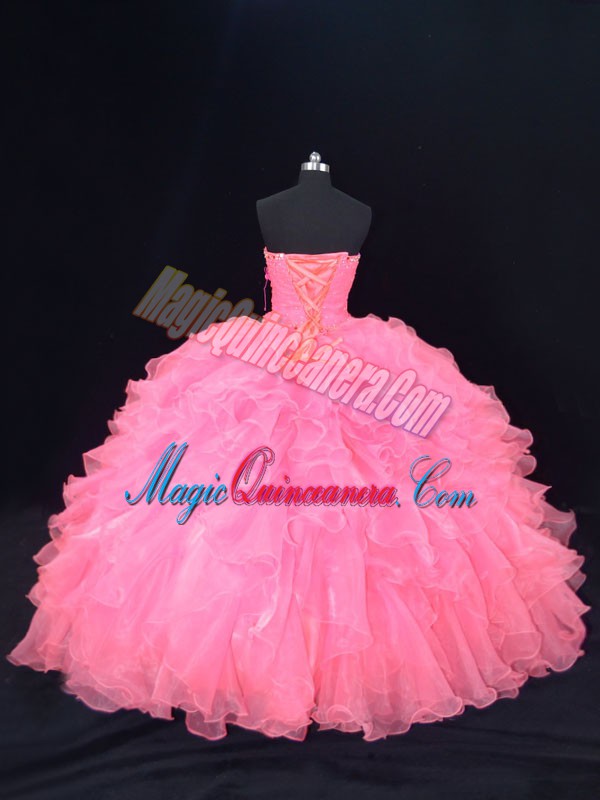 , Sleeveless Beading and Ruffles Lace Up 15th Birthday Dress
