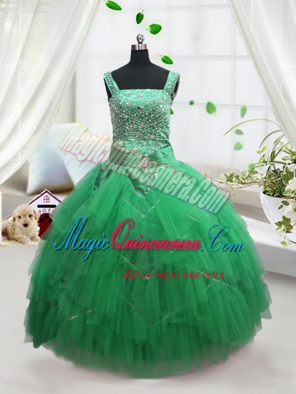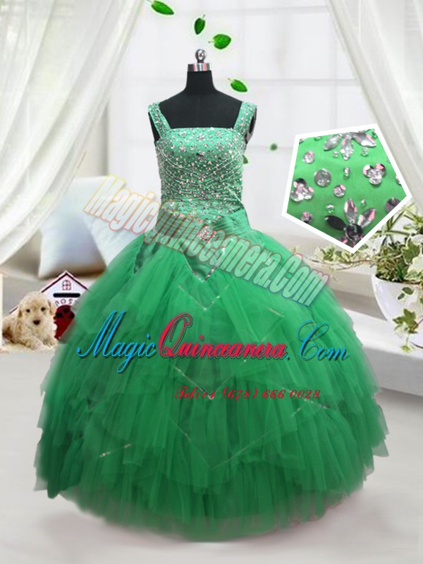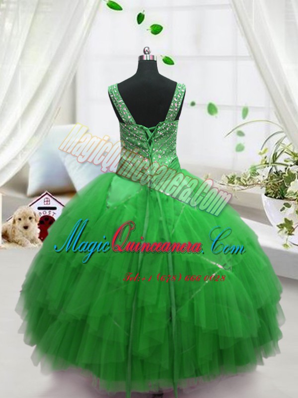 Sleeveless Beading and Ruffles Lace Up Kids Formal Wear