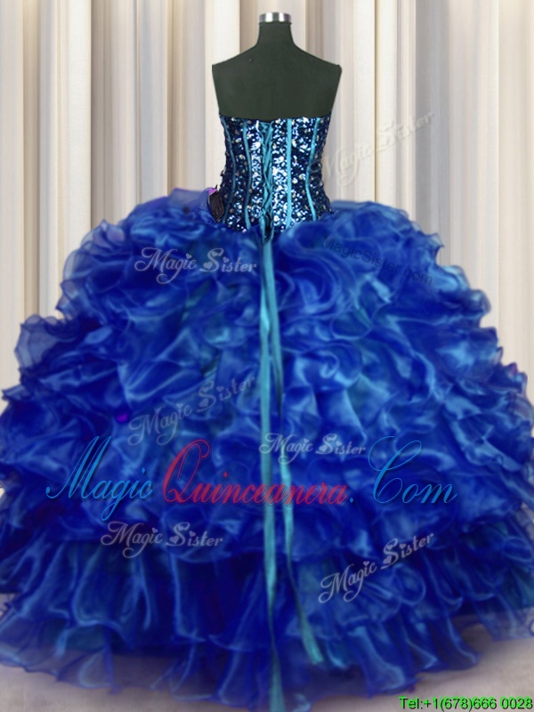 This is a finished dress tailored and photographed by "Magic Quinceanera". All rights reserved. Copying or otherwise reproducing this image is strictly prohibited.
