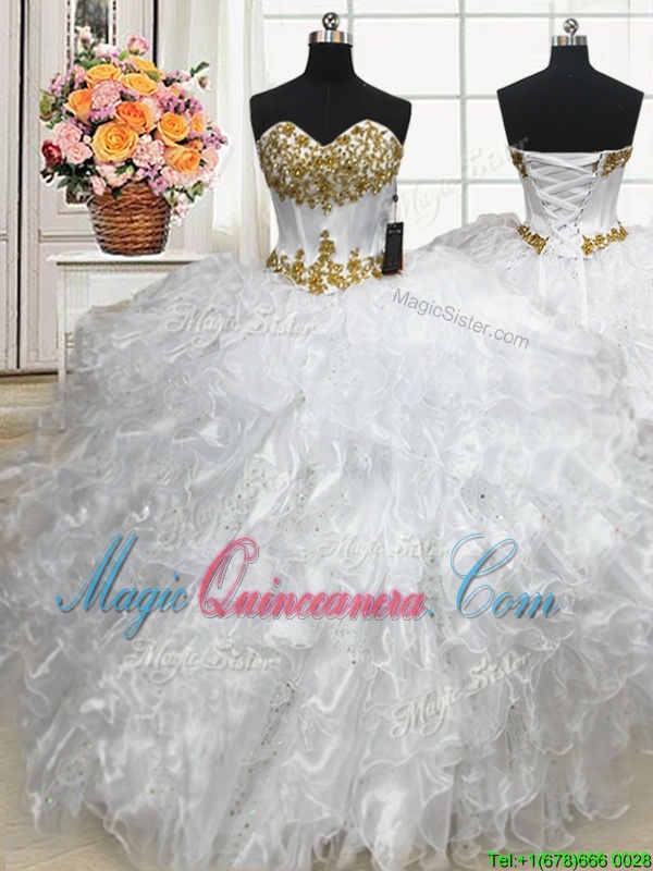 , Sleeveless Beading and Ruffles Lace Up Sweet 16 Dress