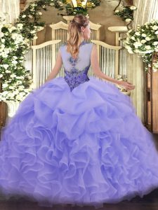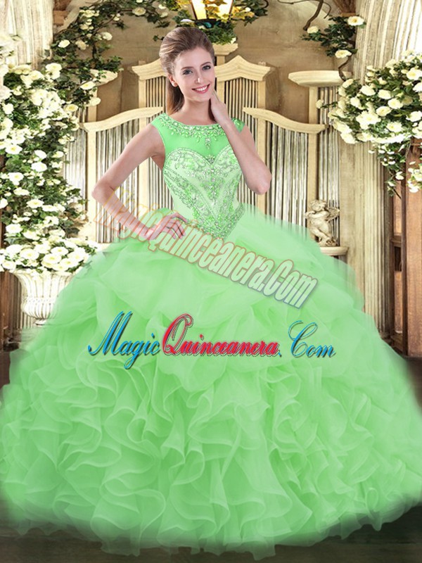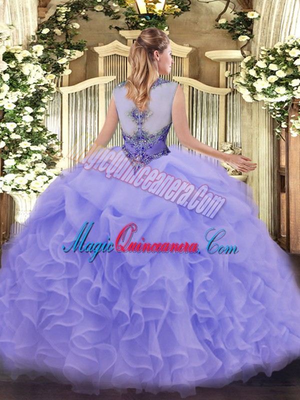 , Sleeveless Beading and Ruffles Lace Up Sweet 16 Dress