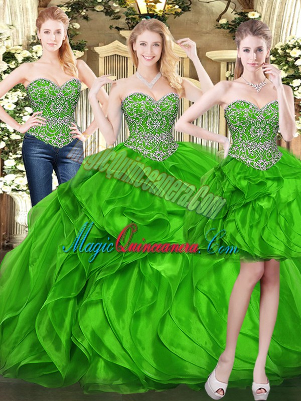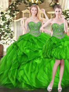 Sleeveless Beading and Ruffles Lace Up Sweet 16 Dresses