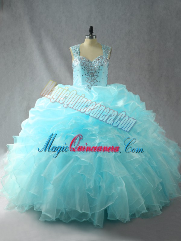 Sleeveless Beading and Ruffles Zipper Vestidos de Quinceanera with Aqua Blue