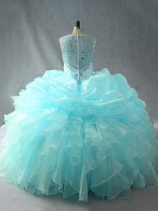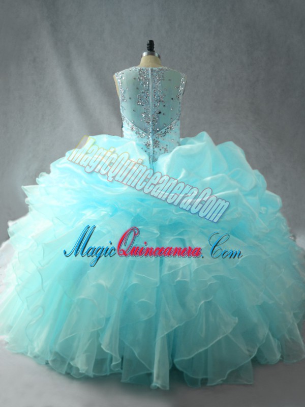 , Sleeveless Beading and Ruffles Zipper Vestidos de Quinceanera with Aqua Blue