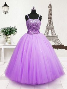 Sleeveless Beading and Sequins Zipper Pageant Gowns For Girls