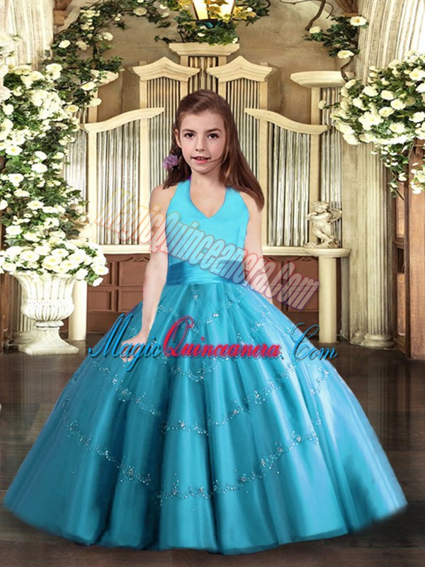 Sleeveless Beading Lace Up Evening Gowns