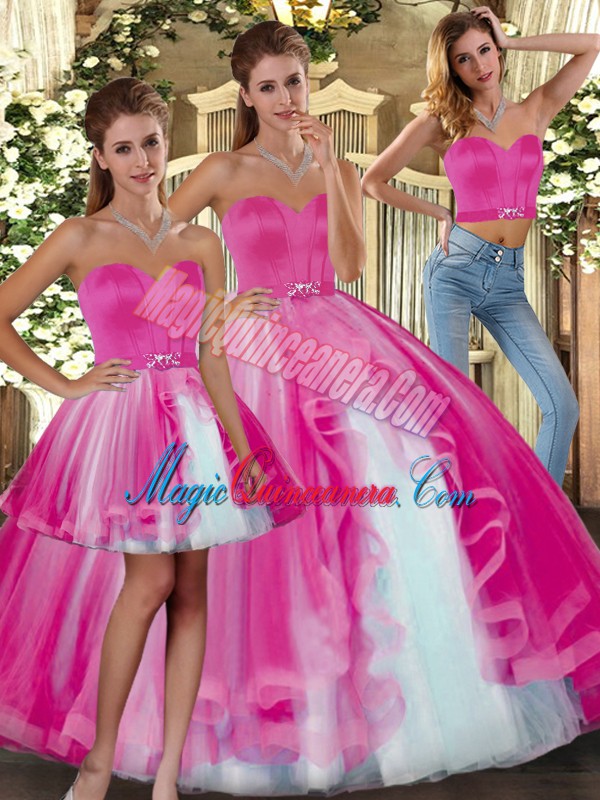 , Sleeveless Beading Lace Up Quince Ball Gowns