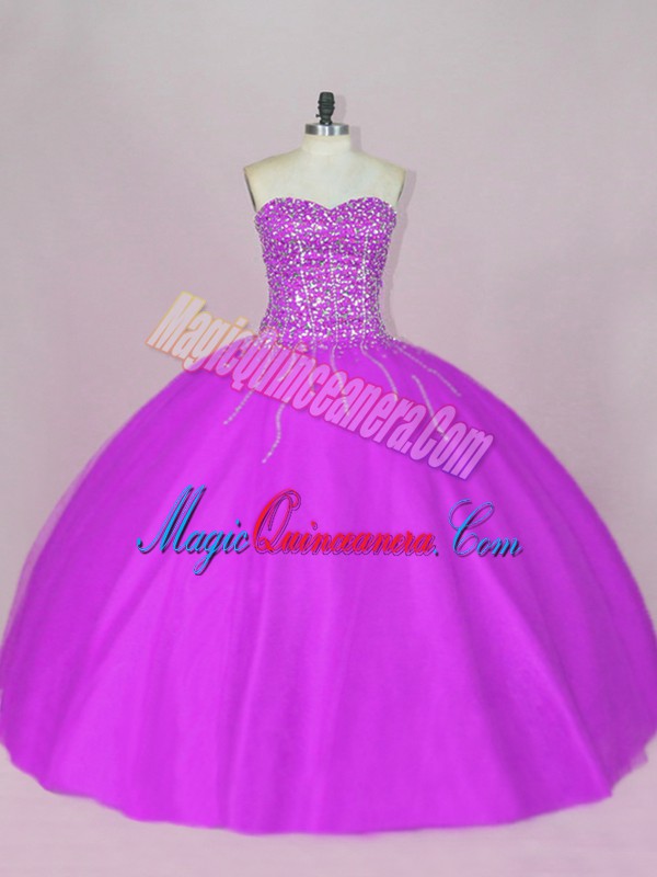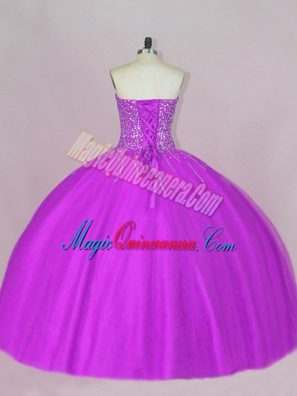 Sleeveless Beading Lace Up Quinceanera Gown