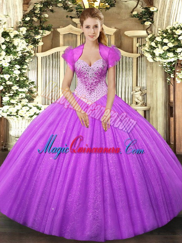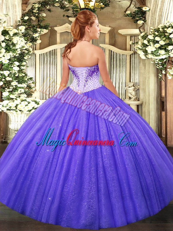 Sleeveless Beading Lace Up Quinceanera Gowns