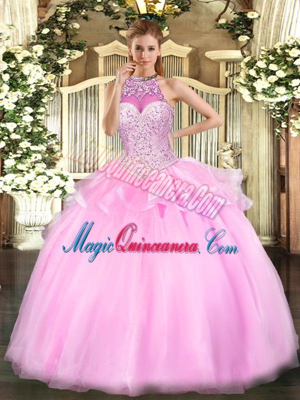 Sleeveless Beading Lace Up Sweet 16 Dress
