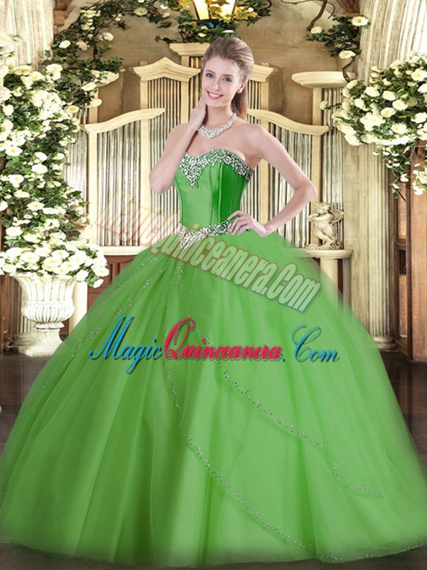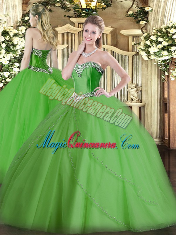 Sleeveless Brush Train Lace Up Beading Sweet 16 Dresses