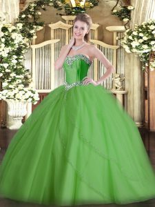 , Sleeveless Brush Train Lace Up Beading Sweet 16 Dresses
