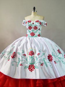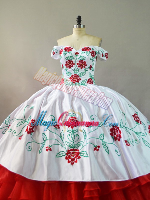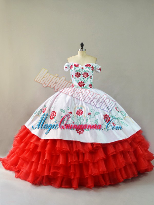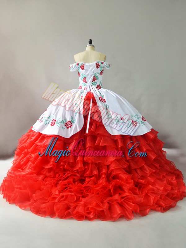 , Sleeveless Court Train Embroidery and Ruffled Layers Lace Up Ball Gown Prom Dress