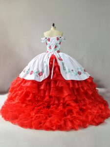 Sleeveless Court Train Embroidery and Ruffled Layers Lace Up Ball Gown Prom Dress