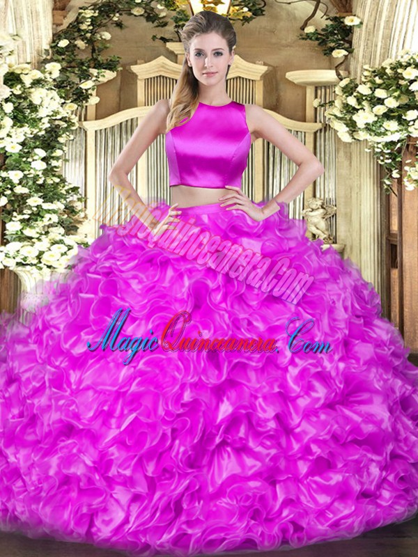 Sleeveless Criss Cross Floor Length Ruffles Quinceanera Dresses
