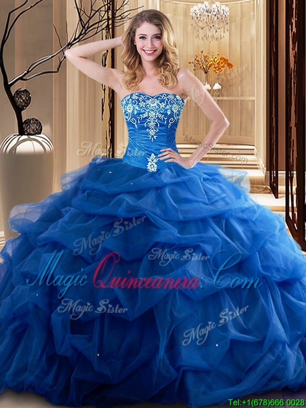 , Sleeveless Embroidery and Ruffles Lace Up 15 Quinceanera Dress