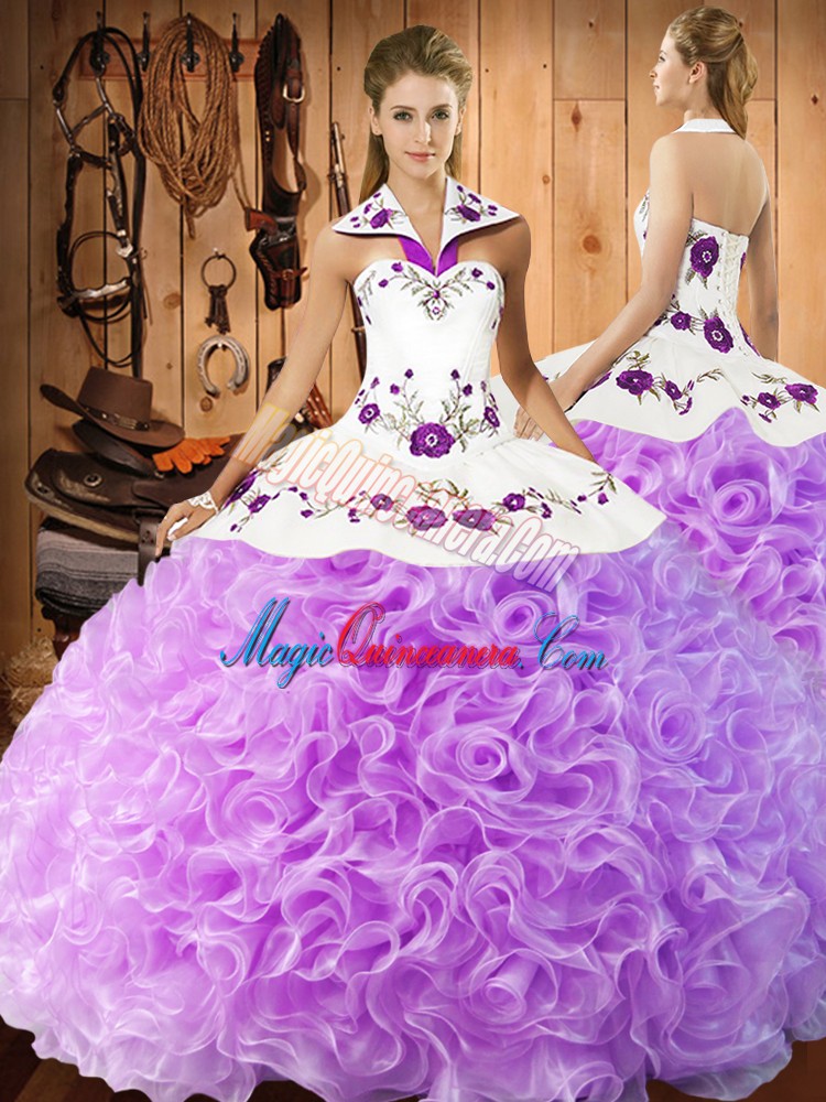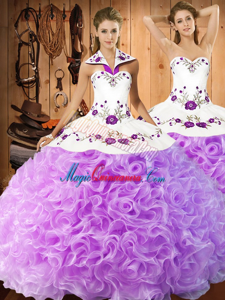 , Sleeveless Embroidery Lace Up Sweet 16 Dresses