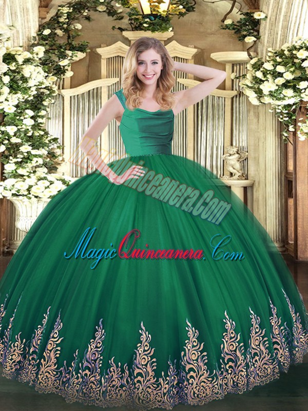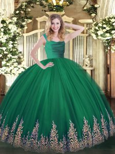 Sleeveless Floor Length Beading and Appliques Lace Up Sweet 16 Quinceanera Dress with Turquoise