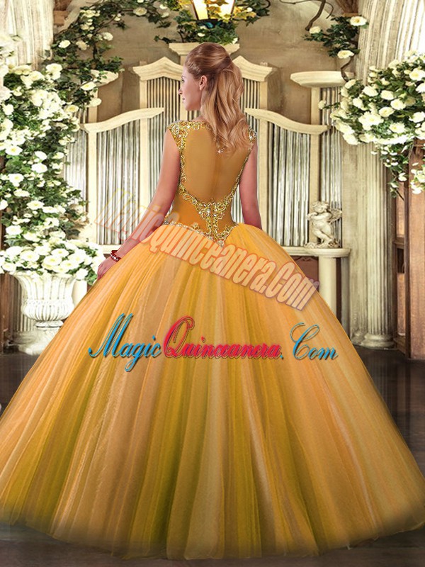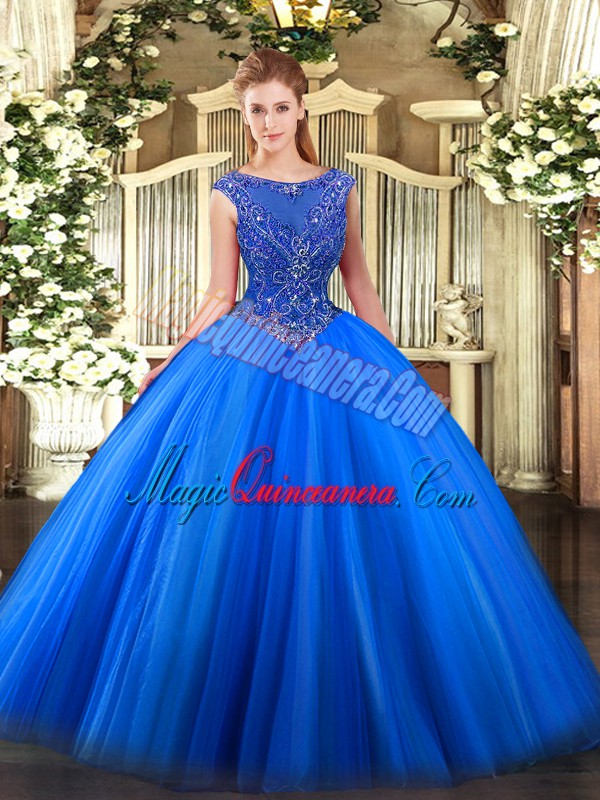Sleeveless Floor Length Beading and Appliques Zipper Sweet 16 Quinceanera Dress with Royal Blue