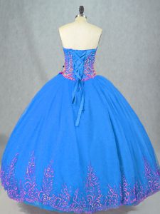 , Sleeveless Floor Length Beading and Embroidery Lace Up 15th Birthday Dress with Blue