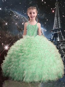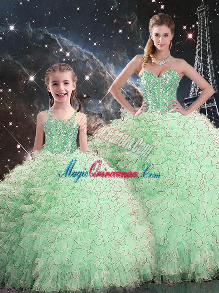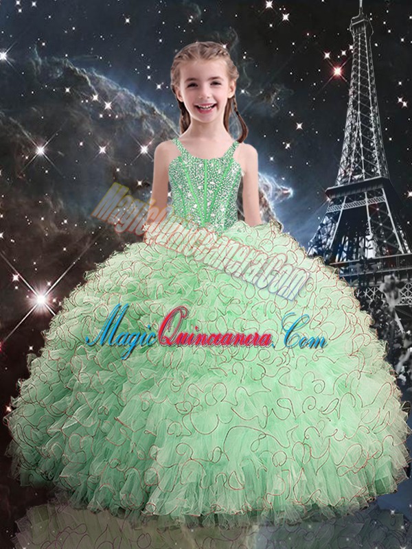 Sleeveless Floor Length Beading and Ruffles Lace Up 15th Birthday Dress with Apple Green
