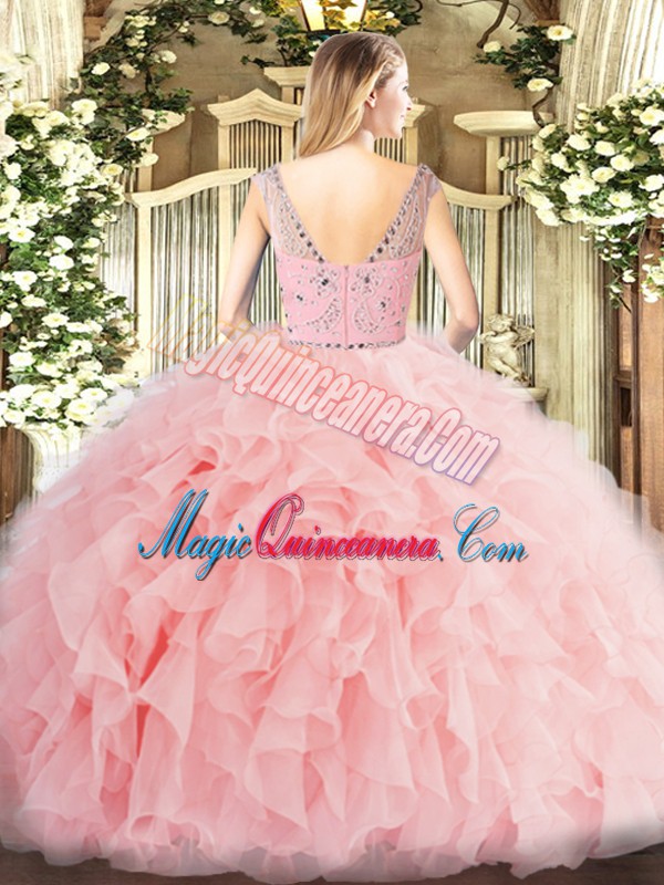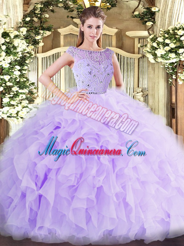 Sleeveless Floor Length Beading and Ruffles Zipper Vestidos de Quinceanera with Lavender