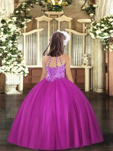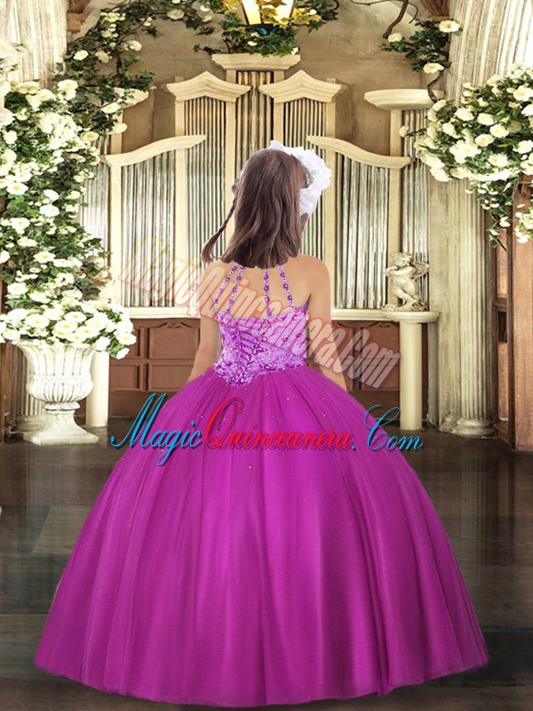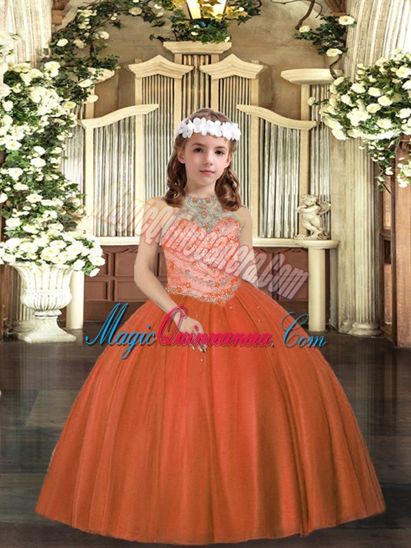 Sleeveless Floor Length Beading Lace Up Girls Pageant Dresses with Rust Red