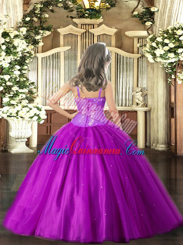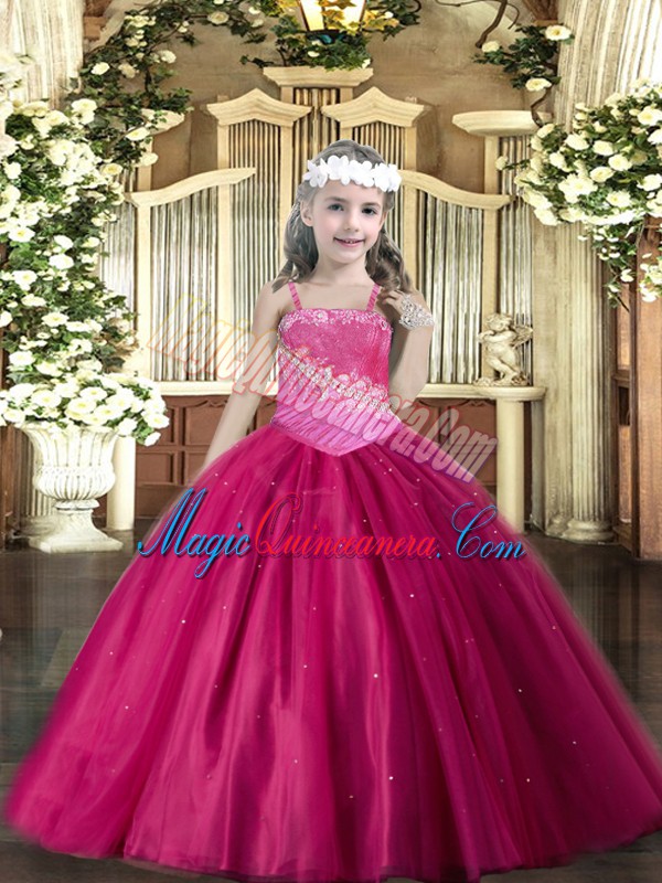 Sleeveless Floor Length Beading Lace Up Pageant Dress for Womens with Fuchsia
