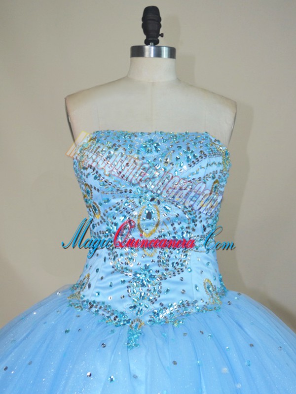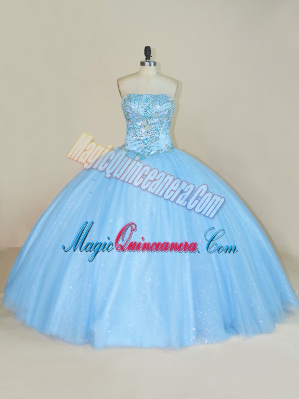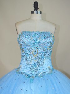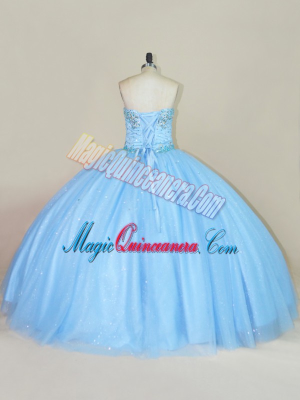 Sleeveless Floor Length Beading Lace Up Sweet 16 Dress with Blue