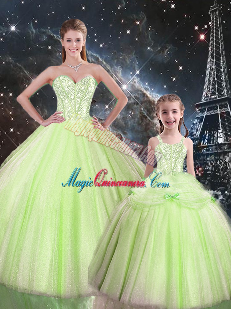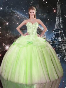 Sleeveless Floor Length Beading Lace Up Sweet 16 Quinceanera Dress with Yellow Green