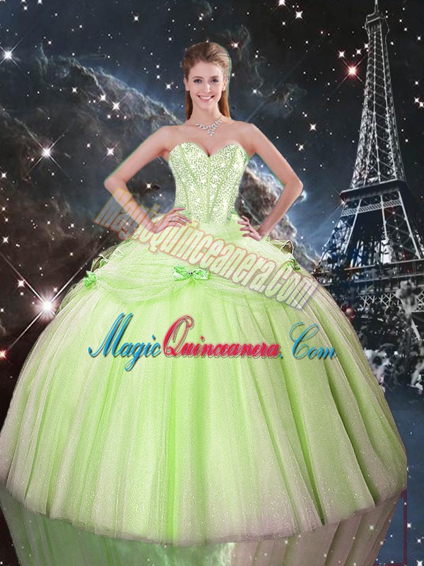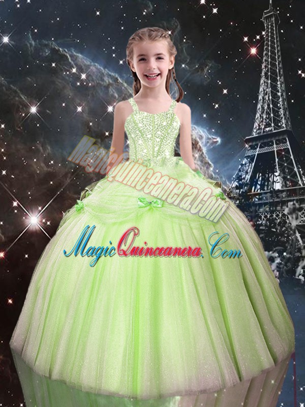 , Sleeveless Floor Length Beading Lace Up Sweet 16 Quinceanera Dress with Yellow Green