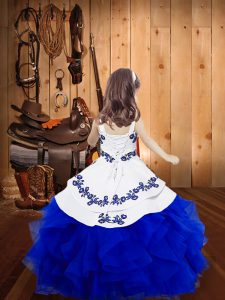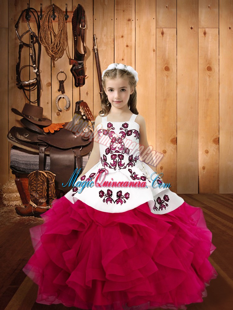 Sleeveless Floor Length Embroidery and Ruffles Lace Up Glitz Pageant Dress with Fuchsia
