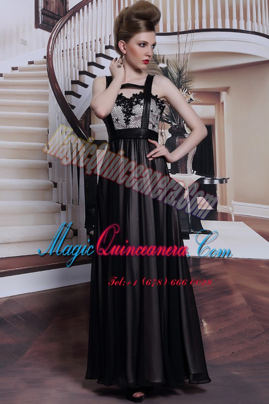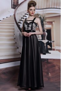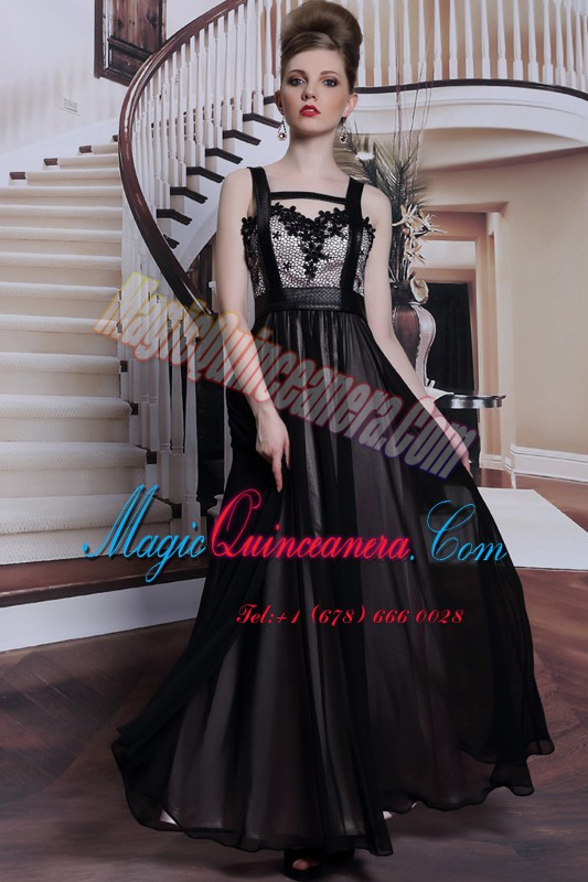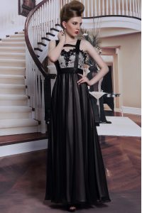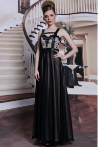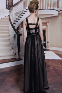 Sleeveless Floor Length Embroidery Criss Cross Mother Of The Bride Dress with Black