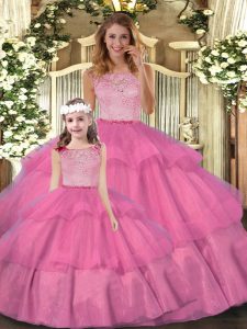 Sleeveless Lace and Ruffled Layers Zipper 15 Quinceanera Dress