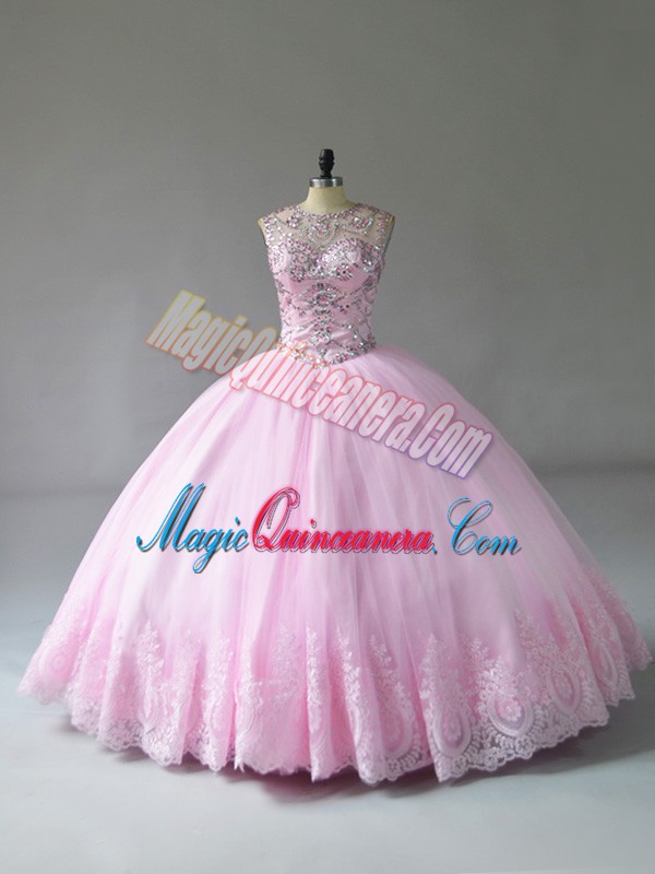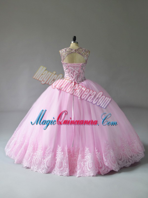 , Sleeveless Lace Up Floor Length Beading and Appliques Quinceanera Dresses