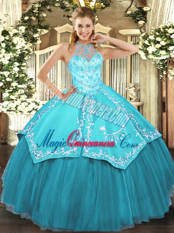 , Sleeveless Lace Up Floor Length Beading and Embroidery Sweet 16 Quinceanera Dress