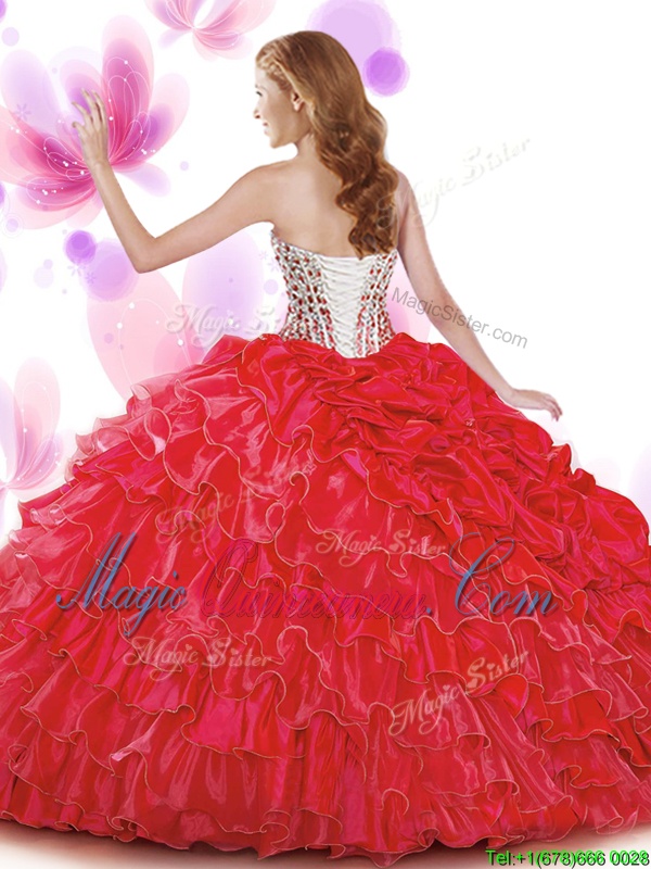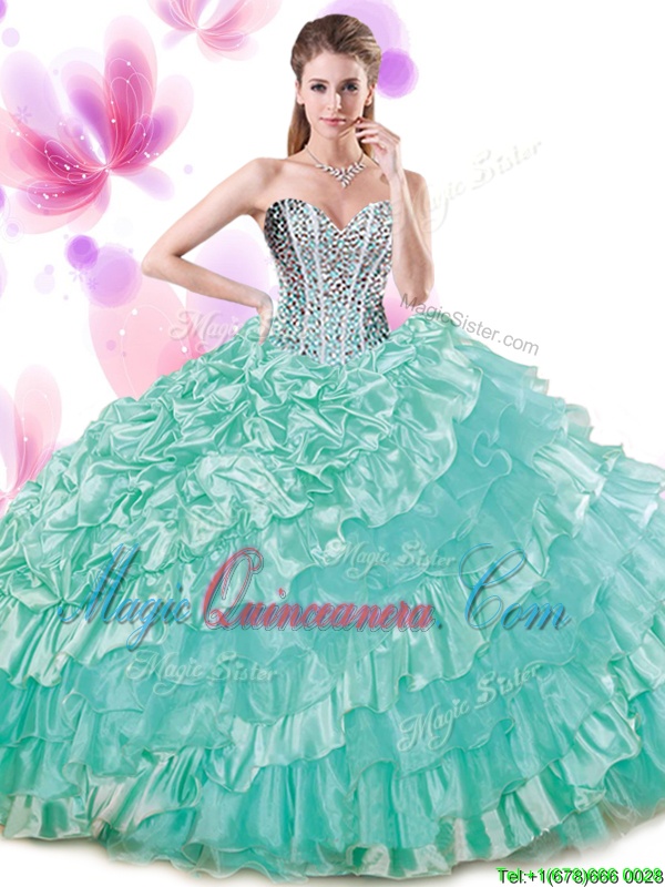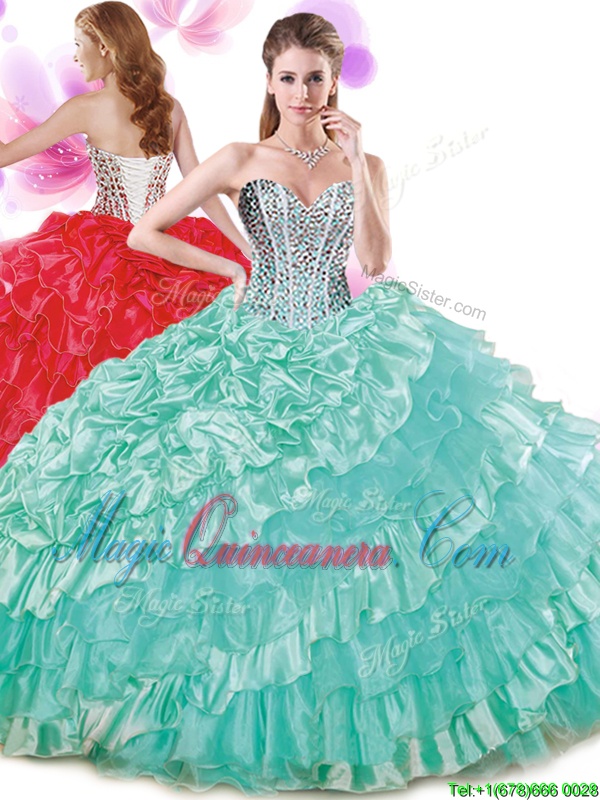 Sleeveless Lace Up Floor Length Beading and Ruffled Layers and Pick Ups Ball Gown Prom Dress