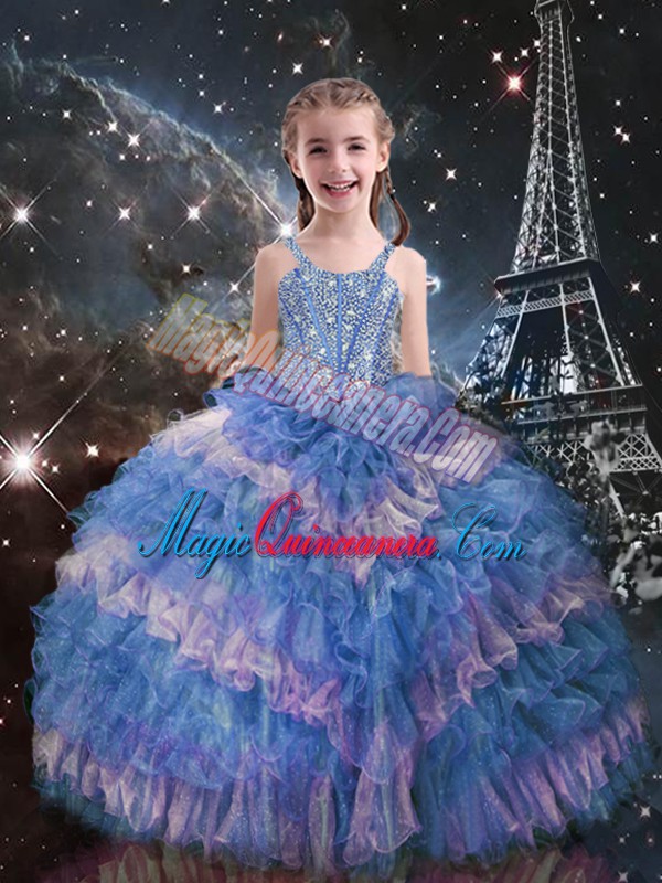 Sleeveless Lace Up Floor Length Beading and Ruffled Layers Pageant Gowns