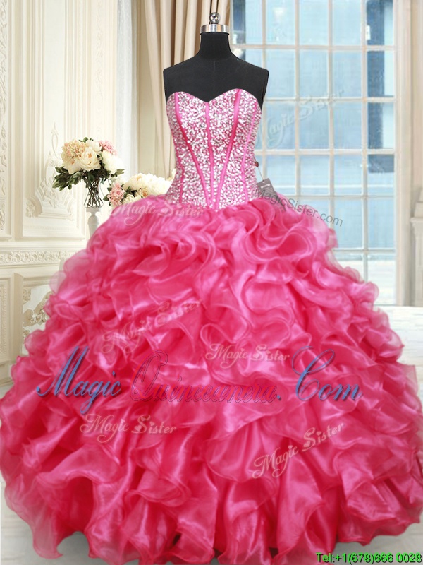 , Sleeveless Lace Up Floor Length Beading and Ruffled Layers Sweet 16 Dresses