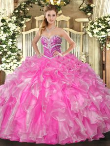 , Sleeveless Lace Up Floor Length Beading and Ruffles Ball Gown Prom Dress