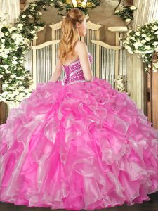 Sleeveless Lace Up Floor Length Beading and Ruffles Ball Gown Prom Dress