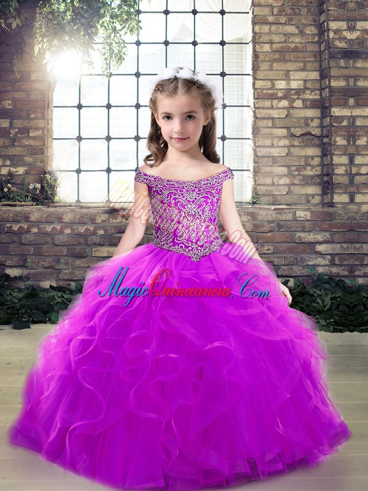 Sleeveless Lace Up Floor Length Beading and Ruffles Little Girls Pageant Dress Wholesale