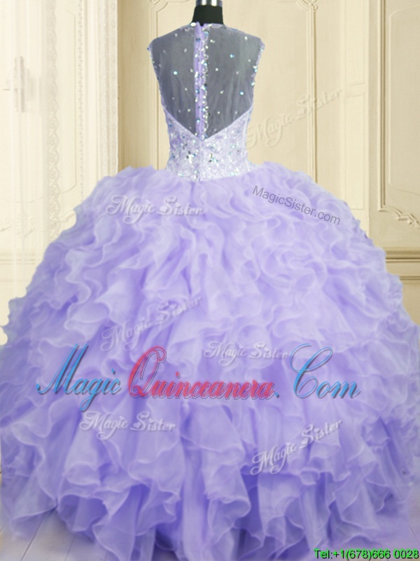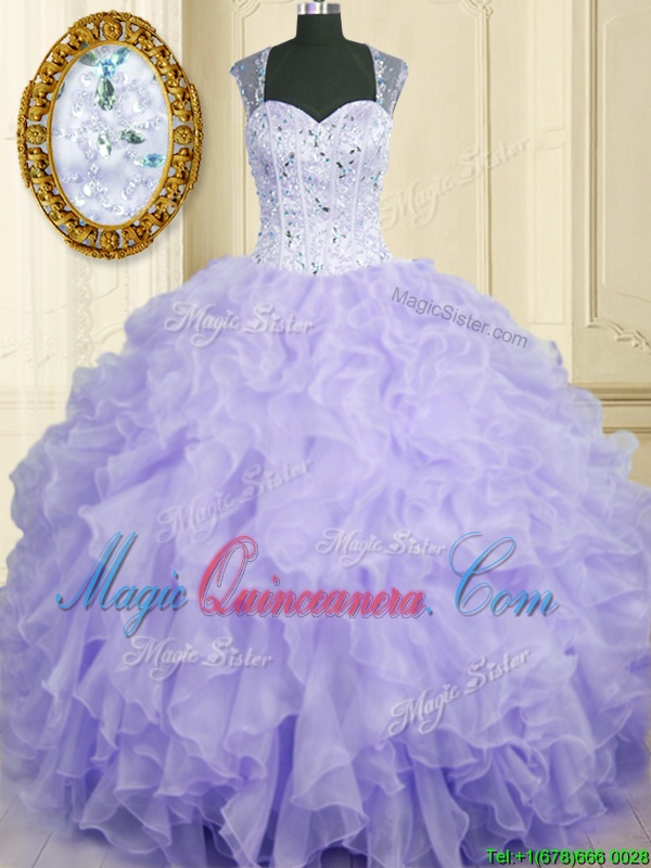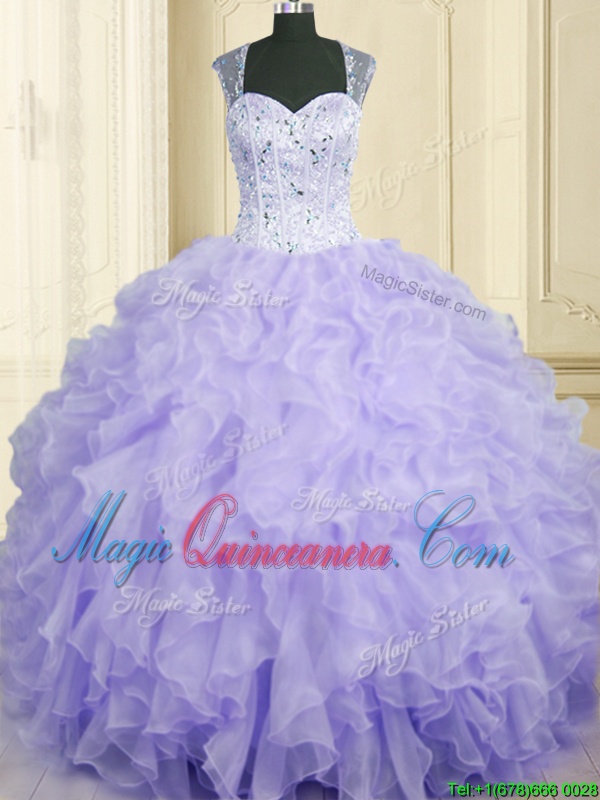 , Sleeveless Lace Up Floor Length Beading and Ruffles Quince Ball Gowns