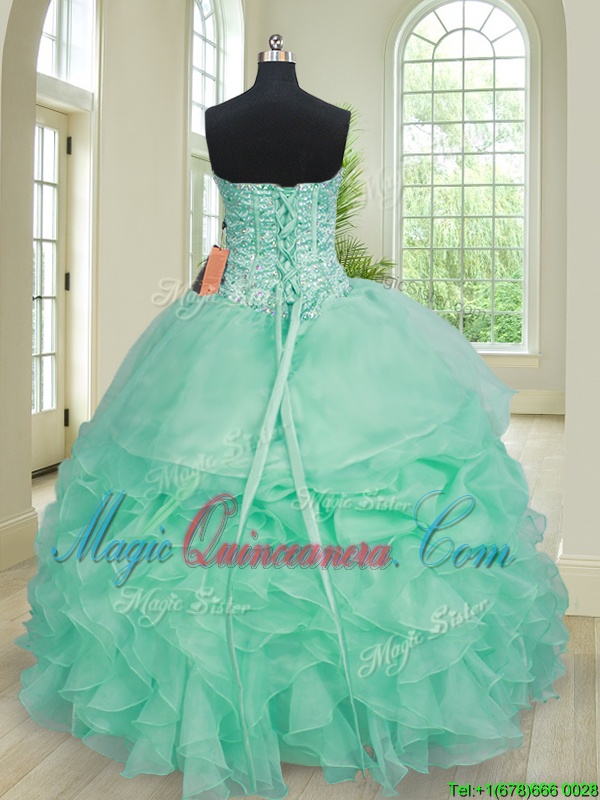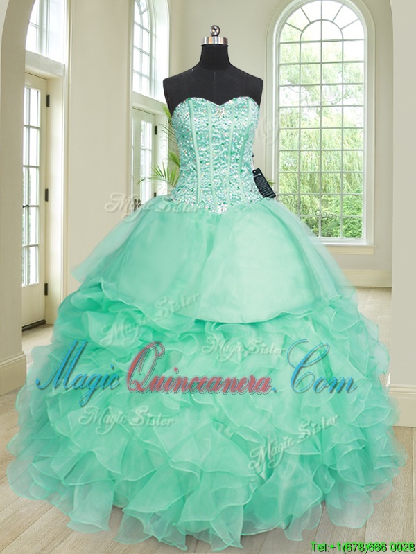 , Sleeveless Lace Up Floor Length Beading and Ruffles Quinceanera Dresses