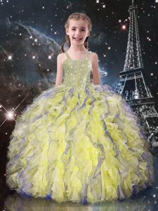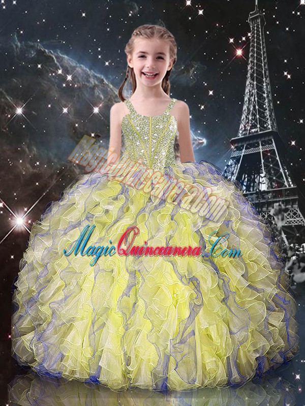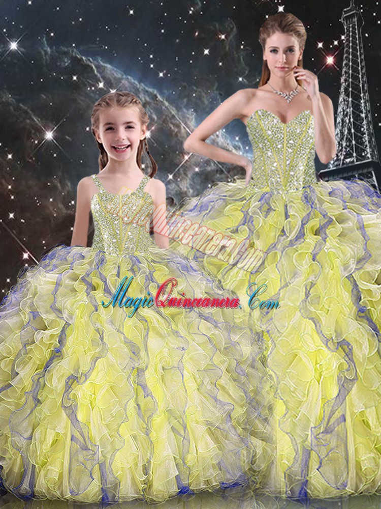 , Sleeveless Lace Up Floor Length Beading and Ruffles Quinceanera Gowns