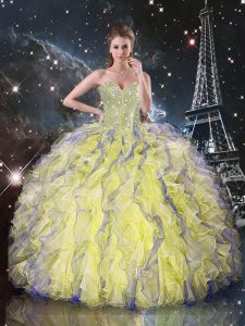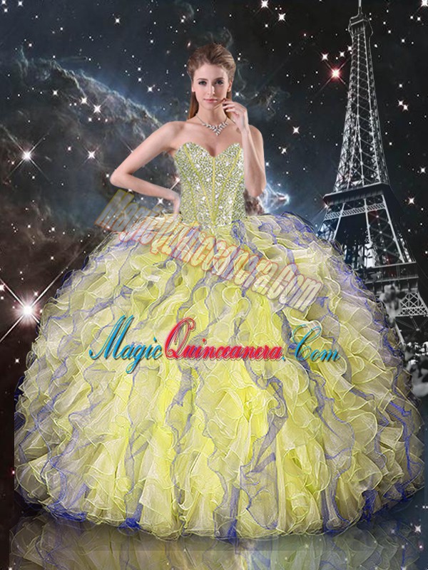 Sleeveless Lace Up Floor Length Beading and Ruffles Quinceanera Gowns