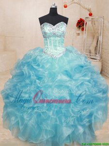 , Sleeveless Lace Up Floor Length Beading and Ruffles Sweet 16 Dresses