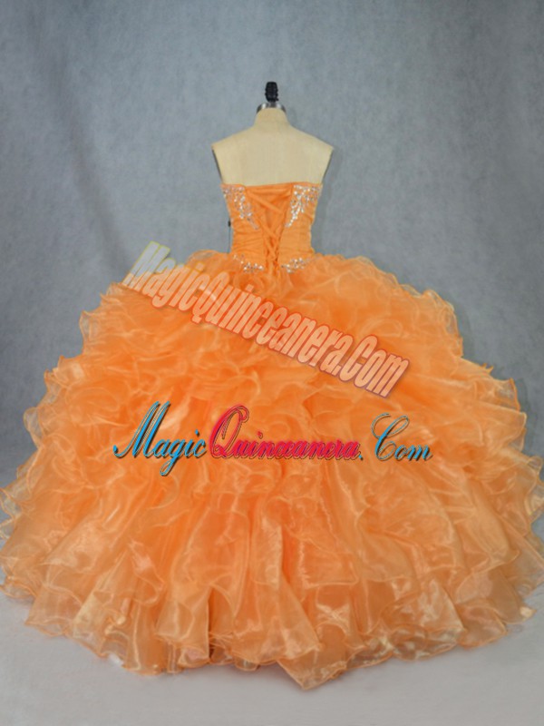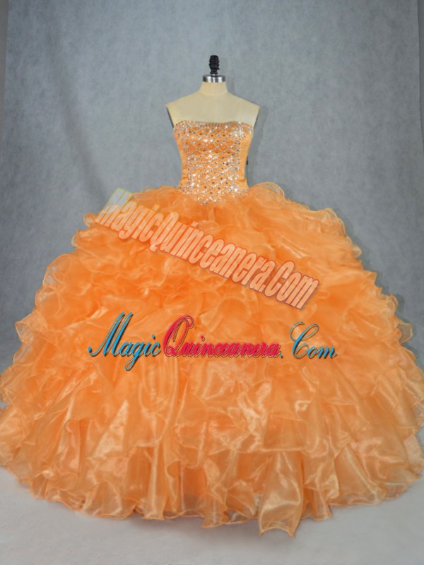 , Sleeveless Lace Up Floor Length Beading and Ruffles Sweet 16 Dresses
