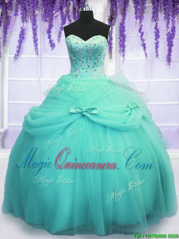 Sleeveless Lace Up Floor Length Beading and Sequins and Bowknot Sweet 16 Dress